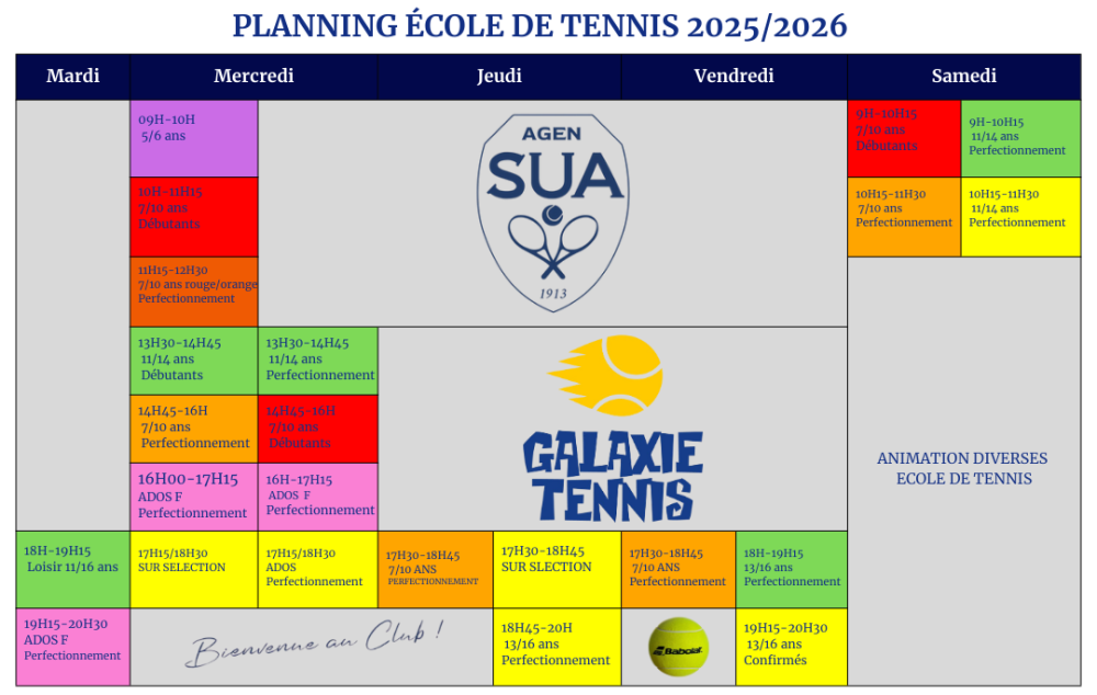 Planning donné à titre indicatif, certains créneaux peuvent être soumis à modification en fonction des élèves inscrits à la rentrée 2025/2026.